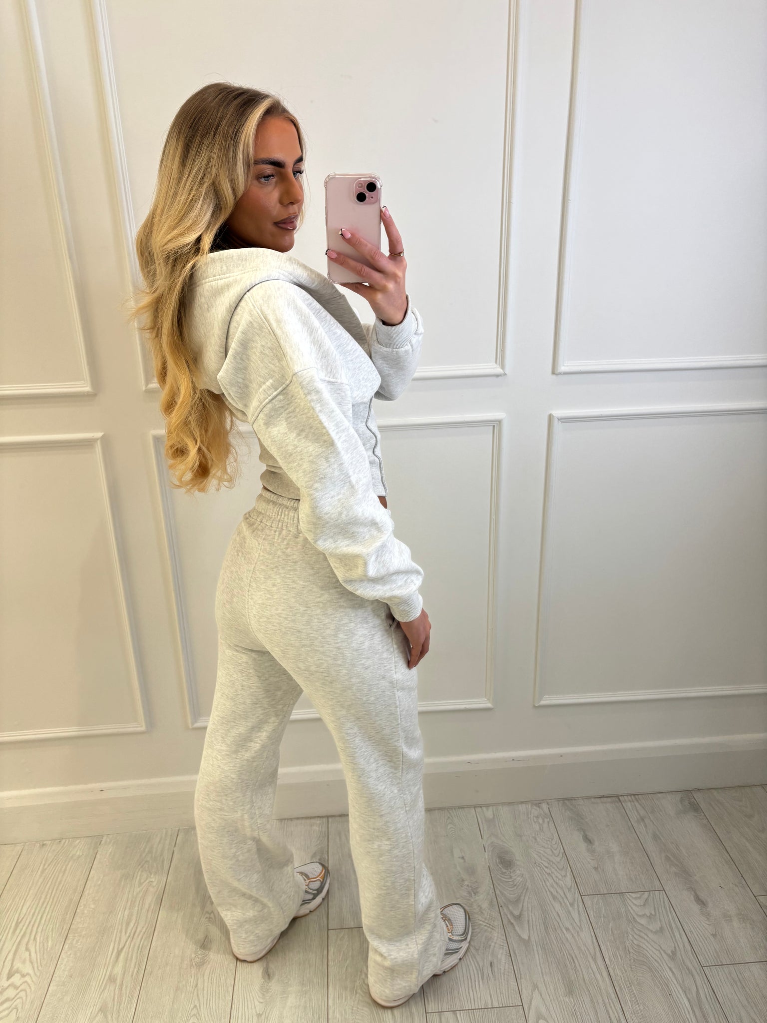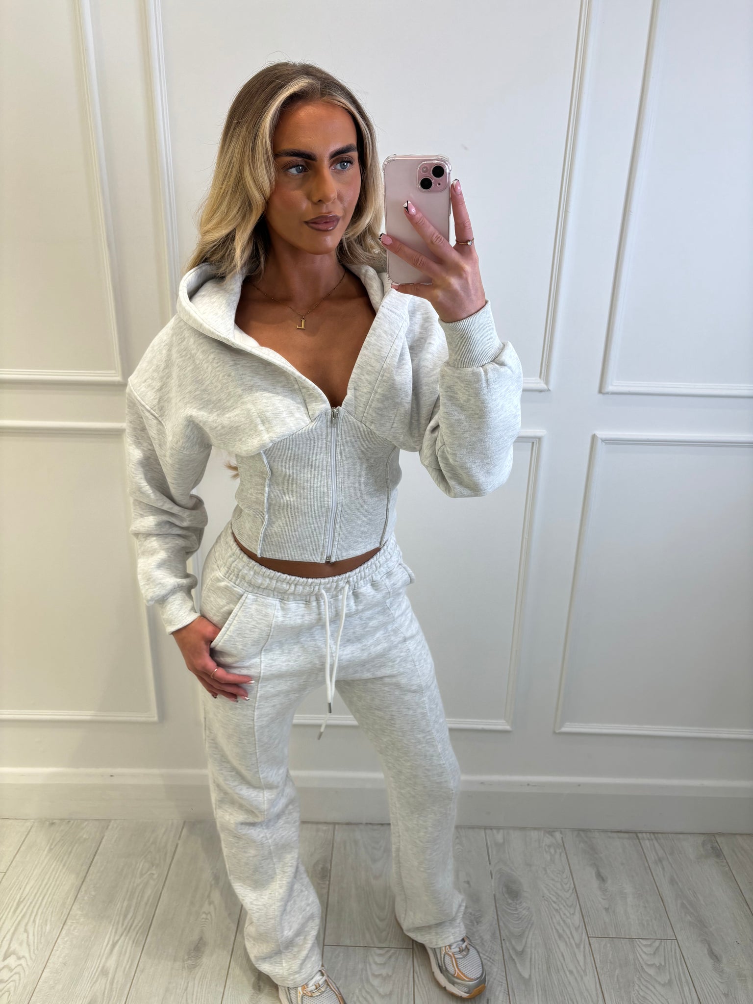 Chic and effortless, this two-piece set features a structured zip-front hoodie with contour detailing for a sculpted fit, paired with high-waisted joggers with an elasticated drawstring waist. Designed in a soft, premium-feel fabric, it’s the perfect blend of comfort and style for everyday wear.