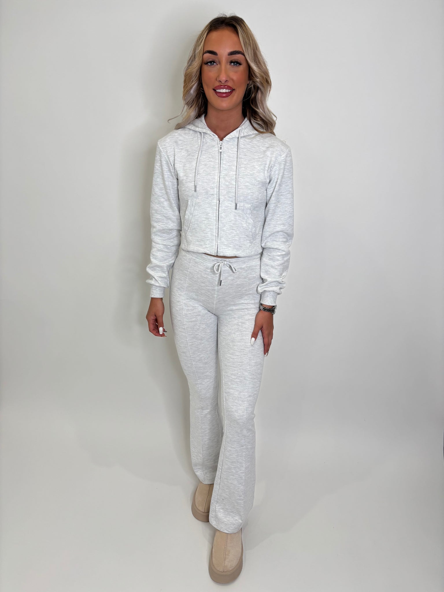 Cozy meets stylish! This cropped hoodie and high-waisted flared jogger set is perfect for lounging, running errands, or casual outings. Soft, stretchy, and flattering—your new go-to for effortless everyday style.